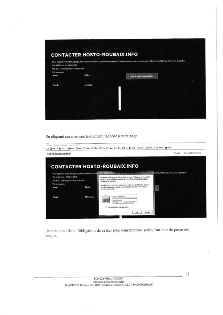 Pour le cas où le directeur du centre hospitalier souhaiterait faire d’autres procédures en référé d’heure à heure pour museler à nouveau un site trop critique, nous vous prions de bien vouloir prendre en compte les observations suivantes pour vos constats d’huissier: